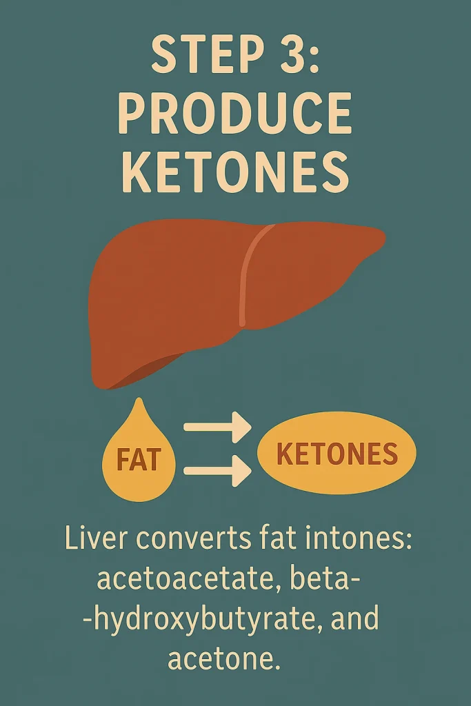 Your liver converts fat into ketones — three main types: acetoacetate, beta-hydroxybutyrate, and acetone.
