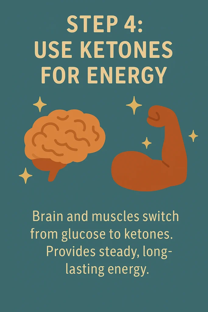 Your brain and muscles adapt to using ketones instead of glucose, which provides a steady, efficient energy supply.